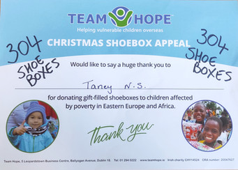 There was a total of 304 boxes which is fantastic! Thank you to everyone who contributed.